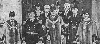 Officers of the U.S. destroyer Flusser with the mayors of Chatham, Gillingham and Rochester, at Chatham Town Hall, yesterday. [Charles is second from right.] |