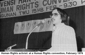 The next two years were quite agonising for the family though Azmi hardly complained or grumbled. After much persuasion by doctors, family members and friends he agreed to go for another medical treatment, this time at the Royal Melbourne Hospital, Australia. During the two years Azmi had to make two trips for medical treatment there. But he passed away on 24 May 1992 at the same hospital. Though one ought to have expected the worst in the light of his medical history, it is but only human to think in optimistic terms. Death is always a shock but it is a necessary reminder of the omnipotence of God. Even though an important part of my life is over, there is so much that is good to remember. These memories will carry us through in our lives. We actually never lose the one we love, for even though he is gone, within the hearts of those who care his memory lingers on .... Rohana Yusuf Reproduced from Azmi Khalid, Human Rights Advocate -