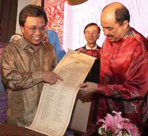 Nasi lemak is now national heritage, VI gets back its name By Shuhada Elis The next time you eat nasi lemak, yong tau foo or tosai, bear in mind that they are not just food but also a national heritage. They are among 100 local foods, including Penang char kuey teow and pisang goreng, which have been included in the list as they enjoyed favoured status and should not be forgotten. The food list is part of the 172 items which have been given the national heritage status and announced by Unity, Culture, Arts and Heritage Minister Datuk Seri Shafie Apdal at a ceremony at Victoria Institution (VI) here today. The others include heritage sites, paintings, cultural dances and living heritage treasures. The 116-year-old VI was also declared as one of the 12 heritage buildings in the list besides Stadium Merdeka and Masjid Jamek here. In his speech, Shafie, a former VI student, announced that the school s name would revert to VI instead of SMK Victoria. This school has played an important role in the nation s history and it is also the first English high school in Malaya. The world has known it as Victoria Institution and it should remain that way, he said to a loud cheers and applause by current and former VI students who were present in the packed hall. Among them was Federal Territories Minister Datuk Seri Zulhasnan Rafique, who was also Shafie s senior. Shafie said the tangible and intangible heritage items would be protected under the National Heritage Act 2005 and efforts would be made to preserve them. The buildings on this list cannot be demolished, altered or developed without the consent of the National Heritage Department. It is in this way that the society will realise how important it is to appreciate and keep our heritage for future generations, he added. Six living heritage treasures, who have contributed to the development of the nation s art and culture, also received RM20,000 each. They were prolific storyteller Ali Badron Sabor; traditional drum performance expert the late Tan Hooi Song (whose wife Yai Yin Ching received the cheque); Indian classical dance expert Vatsala Sivadas; boria entertainer Abu Bakar Jaafar; Kadazan Dusun Losimin Majanil, a shaman from Sabah; and bangsawan entertainer Mohd Bahroodin Ahmad. The 172 items are the second batch under the National Heritage List. Former Culture, Arts and Heritage Minister Datuk Seri Dr Rais Yatim announced the first 50 heritage items two years ago. ![]() ![]() Chinese drums welcome VIPS ![]() Present day scouts with Old Boy Khaja Maricar