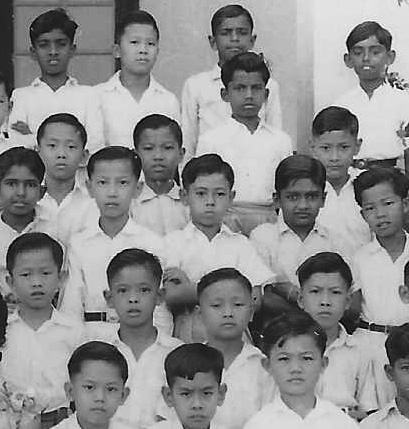 Kah Yen (centre) with classmates in Batu Road School (1951)