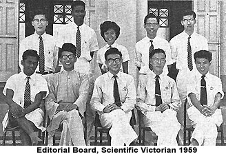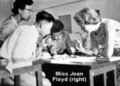 In Form Six, we had lots of fun with Miss Joan Floyd, the biology teacher. We used to do dissection in the labs in the afternoon preparing for the annual Science Exhibition. My classmates, Wong Ket Keong and Molly Ray, liked to sing and so did I. So as we dissected, we sang together. Then surprise of all surprises, Miss Floyd, sitting in her room, would sing along with us. She said to us, "I didn't know you all could sing. You should come and join the school choir." There was another person I knew very well in Form Six,