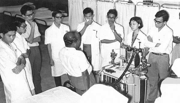 In 1961, Dr Sachi travelled to the United Kingdom on a Malayan government scholarship for his postgraduate specialist training. He would spend nearly three years in England training with outstanding post-war British anaesthetists, becoming the first Malaysian doctor to undertake postgraduate specialist training in anaesthesia in London. A beneficiary of training during the truly golden era in British anaesthesia, Dr Sachi would eventually pay it forward by training and mentoring the next two generations of local anaesthetists in Malaysia from the moment he returned home. ICU PIONEER