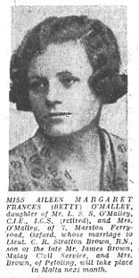 daughter of Mr L. S. S. O'Malley, of 7, Marston Ferry Road,