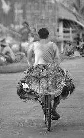 But doing what? Business, of course. With my eldest half-brother, Tan Siew King, I went out to Dusun Tua and Kampung Baru to collect chickens, which I then resold in villages and along the roadside in the town proper. On the first day of this new life, my former fellow students at the V.I. saw me, and to this very minute, I am ashamed to say that I was humbled or malu, even though I was doing honest labour. To my mother's credit - for she had instilled in me what the West calls the "Protestant ethic" and what the Chinese call respect for thrift and hard work - my mood did not last long. One hot Malayan afternoon, a moment I can still capture in my mind's eye, I was pedalling my bicycle through a village. Chickens were squawking in a cage on the back fender of the bike. I had on a singlet, a pair of shorts, and a couple of woven sandals - the proper dress for a classic pukka Chinese business boy, who had just learned the best sales pitch for selling chickens. "Ayam! Ayyie-Yaaaaam!" I shouted happily while wheeling along the dusty red road......
