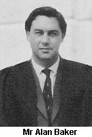 I took the part of a soldier and it would have been very easy to spot me when I marched out on to the stage. All the other soldiers were kwai lows, big and tall, towering above me. Then, when I looked down at the audience, I spotted in the second row my 'nemesis', Dr Lewis! Still I enjoyed my opening night of performance, singing my heart out. I went to school on Monday making sure I had my medical chit with me. Sure enough, as I had expected, I was told to go see Dr Lewis. I told him what had happened to my face. He listened quietly and, to my surprise, he told me he had enjoyed the show. I could swear I detected a smile on his face. I returned to my class feeling better and this incident, I think, finally took away any remaining animosity I had for him. No more playing cat and mouse with him. Mr. Alan Baker He was not much of a headmaster. He seldom