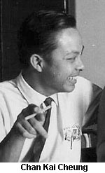 Every year in November, Teng Yuen's "children", some already married with children, would throw a party to celebrate his birthday. Saw Chu Thong and I would be invited along. At these parties there would be many young men, children, older ones, some datuks quietly congratulating him. Teng Yuen now lives a quiet life, ever since his "children" forbade him from driving around too much. There is always be someone to drive him around at night. As for his health he looks fine but still depends on the very expensive ling zhi pills daily, paid for completely by his children, some of whom have done well in business. Teng Yuen is still very helpful, obliging and generous in throwing lunches for his friends. He now has a new passion - collecting huge vases, beautiful pots, tiny trees made of colorful stones or jade from China. His double-storied house in Cheras is full of his new toys, in the sitting room, along the staircase right up to the rooms upstairs. Cleaning the house can be a great chore. But Teng Yuen is happy that he has helped so many poor boys succeed. Now they in turn help him. A very rare person indeed. Oh, he STILL gives me a hug - but leaves out that painful pinch. Mr Chan Kai Cheung ![]() Ah, the inimitable Kai Cheung, the 'boy' with a string of superlatives to describe him. Let me use mine: the cheekiest, naughtiest, friendliest, nicest, harmliest', frankest, most flirtatious person I have ever met. We have or are born with the three roles in us parent, teacher, child. At times the parent in us surfaces but sometimes the child in us is revealed depending on the situation at the moment. In the case of Kai Cheung, it was almost always the child - playful with an infectious cheeky smile on his face. Even his body language worked in tandem with the face. When flirting with a pretty girl, his body language seemed to be doing the same thing too. Putting his arm across the shoulders of the pretty ones was a piece of cake for him and the surprising thing was that the girls (including the pretty married teachers as well) didn t mind and actually seemed to like it. If I am not mistaken most married wives would have liked that from their own husbands. Well, Kai Cheung had one asset. He had this