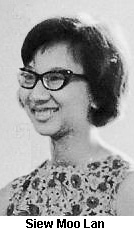 Sai Hoong spent most of the time in the classroom, even during recess, marking books or studying accountancy. He was determined to qualify as an accountant. He needed money to provide his children with a university education. With his teacher s salary it would have been impossible to realize his dream. Eventually he passed his exams and left the teaching profession to work as an accountant in Singapore. Sai Hoong died a few years ago. God bless his soul. His two sons are doing well in life. Miss Chiew Pek Lin She was one pretty little lady when I