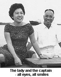 One evening I was chatting with Miss Wong and two male non-graduate teachers on the slope overlooking the school field. My Lambretta scooter was beside me. Miss Wong asked me whether I could give her a ride on my scooter. Reluctantly I said O.K. She stepped on the foot rest putting her full weight on it. Well, our Miss Wong not a Twiggy you know, and my scooter tottered sideways towards the slope. Had it not been for the two teachers who grabbed and pulled the scooter upwards our Miss Wong would surely have tumbled down the steep slope with the scooter. We all had a good laugh. My father had a good friend who was the captain of a large ship from Shanghai which docked often at Port Swettenham. Captain Khiang's wife had died some years ago and he was looking for a new life partner. My father asked if I knew of ladies who might be interested in meeting him. My first thought was, "Voil ! Miss Wong!" I carefully hatched a ploy. Soon after I asked if Miss Wong and her