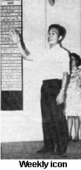 Another time Eng Thye said to me, "I hear you are a member of the Selangor Philharmonic Society. Miss Floyd is leaving the school. I want you to take over the conducting of the singing of the school song." Once again I obliged. Now you just don t stand on the stage and wave your hand about. There was a technique to it. So I paid $50 just to study the art of conducting from my old friend Mr Zimmerman who had a doctorate in music. I was now ready to face the boys at the weekly school assembly. Those skills came in use when, in 1966, I was put in charge of the Girls Choir who sang to the parents and guests at the Speech Day Concert. A few months later - you guessed it - Eng Thye again approached me. "Vincent," he said, "we are short of maths teachers. Could you teach maths to the Form 1 and Form 2 boys?". Again I consented. Little did I realize that I would thoroughly enjoy teaching maths and English to the boys, much more than art to the Fifth Formers. ![]() Conductor Vincent takes the Girls Choir through Whispering Hope, A Lover and His Lass, and Loch Lomond. (VI Speech Day 1966) The Teachers These were made up of a potpourri of characters. We had the worriers; the braggarts, the playboy, the genteel, the loudmouths, the grumblers, the naughty, the playful, the helpful, the cheeky, the philosophers and the one-track minds just like you'd find in every organization. So which category did I belong to? I would say I belonged to the playful, cheeky, serious and helpful ones. One morning in my friend s large garden, I caught a beautiful little green lizard with a long tail. I took it home, kept it in a cage and fed it with grasshoppers. It became tame, so tame that I could take it out with me and it would remain still wherever I put it. One Friday morning I decided to take it to school. During recess I took it the staff room. Putting the lizard on my shoulder, I sat next to Miss Wong Yook Ling who thought that it was made of plastic. I told her to give the lizard a little pinch on the tail. When she did it, the lizard jumped and landed on her chest. Miss Wong gave a piercing scream. In dashed Dr. Lewis to find what the commotion was about. Oh dearie me, my goose was cooked! Luckily, Mrs Tan Soo Hai came to the rescue, telling Dr. Lewis that a house lizard had fallen from the ceiling and had landed next to her tea cup. Mrs Tan was so quick-witted, bless her. A few prefects had heard the scream too and milled outside the staff room door wondering what had happened. Dr. Lewis smiled and left. What a close shave it was for me! Miss Wong accepted my apology and we all had a good laugh. I quickly rushed to the art room with my lizard and put it in a box. A few weeks later I set it free in a wooded area. When I set first set eyes on Miss Wong,