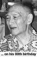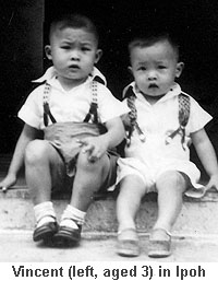 My father was sent to a well-known English school in Ipoh. He was the only son who did well in school and this pleased my grandfather who had plans to send him to England to further his studies. As you know Ipoh was noted for its pretty girls who would dress well in search of rich husbands. My father's passion was playing badminton which was very popular then and mahjong, also a game enjoyed by my mother who had learned it at the tender age of sixteen and had played it till the age of 80. My mother was educated in Chinese (and English later) but spoke English most of the time with her friends. She was spoiled by her doting father who let her go out socialising with the boys. She was among the prettiest in Ipoh and this attracted all the eligible bachelors including my father. So enamoured was he by her that he ignored his future education. He had rivals but somehow he prevailed over them and soon married my mother. I don't think birth control pills were invented then. Soon I was brought into the world and then my brother and yet another brother and a sister in 1941, a year many people will never forget as it brought great misery and suffering to them all. On December 7, 1941, the Japanese bombed Pearl Harbour and ignited the Pacific War. The Occupation Soon the Japanese army landed at Singgora and from Kota Baru marched south, some on confiscated bicycles and captured vehicles. The British and Indian soldiers were no match against the ferocious J apanese soldiers. Memories of the atrocities committed by the Japanese soldiers in Nanking came flooding back. The people were gripped by fear, especially the Chinese and those who had worked for the British. My father was one of them. The British retreated southwards, as did my father who took his family to Kampar and then to a remote village in Ampang where an old friend of my grandfather offered him a little attap house to live in. Ipoh was soon occupied and people tortured and made to point out those who had worked for the British or had collaborated with them. Soon we received the tragic news that our abattoir had been destroyed by a bomb. Life in the Village For a boy approaching seven, life in the village was fun and carefree. The elderly folks consisting mainly of women. Some men gave us titbits to eat. There were fruit tree - banana, rambutan and chiku. When we were thirsty, we would cut down a sugar cane plant for its sweet juice. Tapioca and sweet potaotes were available, except rice which was most difficult to get, even for those with money. Then news came that the Japanese had occupied KL and rumours of beheadings and torture and of Japanese soldiers looking for women were rampant. News had it that traitors were leading the Japs into villages. Village leaders began directing women, young and old, and children to dig tunnels into hillsides some distance from the villages. These tasks were quickly done. Soon we did some similar to Dr. Mahathir's "Look East" policy that was promulgated years later. We "looked east" whenever we heard the faintest drones of the airplanes or the sounds of bombs exploding. One night we heard planes approaching, we looked east and saw flares being dropped. It was a beautiful sight to us children but to the adults it was worrying. They immediately banged empty tins or any metal containers together, a signal to warn us to hide. The elders ran helter-skelter back into the houses, gathered their children and ran towards the tunnels. The children in turn were frightened by the sight of the panic-stricken adults. We reached our tunnels and remained quiet there for a long time. A few men got out to check for sounds of approaching footsteps or any signs of them. Then they sneaked back to the fringes of the village and saw, to their relief, that all was quiet. The villagers crawled out of the tunnels on being told that it was safe to do so. Life in the village was back to normal but not for long. So frightened were the people that the slightest rumour was enough to send them into a state of panic. One morning someone heard that solders were on their way to the village. The village head told my mother to take my sister, who was then only a few weeks old, to hide in the hill some distance away. She did so, taking some food and milk with her. The two remained hidden for a long time, perhaps feeling safe, or so, mother thought. One day, after feeding my sister (who is today married to an Englishman in Brisbane and a very happy mother with four lovely grandchildren in Brisbane), mother sat down and dozed off. When she opened her eyes, there were, to her horror, five armed Japanese soldiers sitting down and looking at her. The leader, a youngish man, spoke in broken English and in a calm manner told her not to be frightened. Mother, a rather timid woman, wet her pants in fright and could not utter any sound, let alone speak. The Japanese leader spoke again telling her that they had got separated from the others and had got lost in the jungle. They were very hungry and thirsty, he said. Could she lead them to the village for some food? He promised her they would not harm her or the villagers. Mother had no choice but to nod her head in agreement. It took them quite a while to reach the village and all was quiet as they approached. Mother regained her composure and with a little courage shouted to my grandmother not to be frightened and asked the villagers to all come out from the huts. They did so in silence. Mother asked my grandma to slaughter two chickens, another neighbour to cook rice and sweet potatoes and yet another to prepare some vegetables and tea. Meanwhile, the soldiers took turns to clean themselves using the well water nearby. While waiting for their meal, the leader smiled at me and took my hand and told mother that he, too, had a son at home. I guess he missed his family very much like any loving father. The soldiers ate the food with much relish. They thanked us, asked for directions to K.L. and told my m