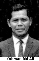 One year the VI Adventurers' Club was formed with him as the master-in-charge. The members were the Form Six boys and they had planned to climb Mount Ophir. Lam Kok Hon approached me and talked me into joining the expedition after painting a good picture of the 3,000 foot mountain. Always game for an exciting adventure I readily agreed. The morning came. We were all attired for the climb but Lam Kok Hon turned up in his normal clothes. "Oh, don t worry," he reassured us, "I can change when we reach the base." When we finally arrived, he said to me, "Vincent, I m not feeling well. You take charge. I m going to Malacca town to rest." And he quickly drove off. The boys were surprised but not worried. In some way deep down they were happy as they felt Lam Kok Hon would definitely have great difficulty dragging his body up the mountain and would be a hindrance. Me? I was young and strong. After some hours of climbing I became a boy again and was laughing and joking away with the boys. We did have a really jolly good time. At times they joked about their geography teacher. One boy borrowed $5 from me. Alas, I never saw that again. In spite of everything, Lam Kok Hon was a nice fellow and could be fun to have him around. He just liked to talk and enjoyed the attention he got. I heard much later that he had become a born-again Christian. God bless his soul. Mr V. Manuel ![]() He was a jolly fellow who loved the good life and, of course, a good round of beer with his buddies. But this cost money and his teacher s salary was not enough. So Valentine Manuel decided to become a lawyer. And he succeeded. I take my hat off to him for his determination. I heard later that his old VI habits died hard and the judge had to remind Mr Manuel the lawyer that the court room was not a classroom where he could just yell at people. In the VI, I enjoyed his company for he was always cheerful and mixed well with all teachers. But then a cheerful countenance could hide so much. What was hidden no one could not tell. In the classroom, Manuel could be funny, cracking jokes to the boys but when angry he could be a terror. One morning after the report cards had been handed to the pupils, I witnessed him slapping and hitting an Indian boy on his shoulder blade. The shocking thing was that the boy s father was present and looking on helplessly nearby. He did not utter a single word of protest. All I heard was Manuel yelling, "You are a disgrace to your father. You have disappointed him!" This was followed by a slap and the sound of a body blow. Encik Othman Mohd Ali ![]() I consider him the most dedicated teacher in the school. He was one teacher who gave a lot of his time for the sake of the school's footballers. On most days of the week he would be on the field coaching the boys. He treated them as if they were his own sons. They could rest in his house after school and could open his fridge to get a cold drink. As a class teacher Othman was mild with the boys but he taught well and in the staff room he was always marking books. Seldom did he while away his free periods. He occupied the corner next to the prefects' room away from the main table and so was left alone most of the time. He had a serious and quiet demeanour but was friendly with all. Othman had nary a harsh word for any one, but do not offend him for he could be stubborn and would speak out in defence for what he believed in. At staff meetings the others would be frustrated at his stubbornness. Somehow he and I got along well and I could joke with him. Poor Othman, he was diabetic and had to have his daily insulin injections. As far as I knew, he was the sole breadwinner and financial constraints could have had an effect on his health. How could a man give private tuition when he sacrificed so much time for his pupils? Mr Khoo Teng Yuen A man who never married but was a foster father to so many boys and girls in KL as well as in Kuala Selangor. Here was a man who turned down a datukship, something very rarely done by anyone. Teng Yuen first taught at the VI as a temporary teacher in 1957 and 1958. In 1959 he was selected to be trained at the Brinsford Lodge Teachers Training College in England. During the one year in 1958 that I met him I took a liking for him. He was friendly, chatty and dedicated. He talked a lot about badminton. It was his passion. In the VI staff room, Teng Yuen gave me a daily