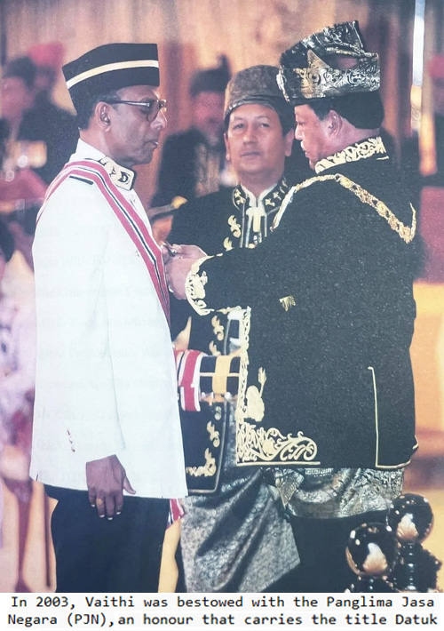 Through it all, his approach remained the same: patience, dialogue and respect. "One thing I've learnt in life," he reflects, "is that when you go to meet people to seek understanding, you don't challenge them. You help them understand." Having seen Malaysia grow as a nation from the time of Tunku Abdul Rahman Putra Al Haj, Vaithi has quietly witnessed history unfold while working behind the scenes to bridge divides. "My hope," he says softly, "is that everyone understands we have one nation and that this nation can only grow if we work together." The book, Vaithi: A Life of Service, captures this journey - the milestones, the struggles and the values that have shaped his life. When I finally ask how he would like to be remembered, Vaithi shakes his head. "I don't want that," he says firmly. "I never worked for myself. I worked for others." He pauses, expression softening. Two of the people dearest to him - his wife, Pooranajothi and his eldest son, Nantha Kumar - never lived to see the book completed. Yet Vaithi knows they would have been proud. In many ways, the book honours them as much as it honours his life's work. "Life has given me many roles to play," he says, adding: "I've tried to do each one with sincerity. If my work has helped even a little to bring people together - in sports, in faith, in community - then I think that's enough." |
